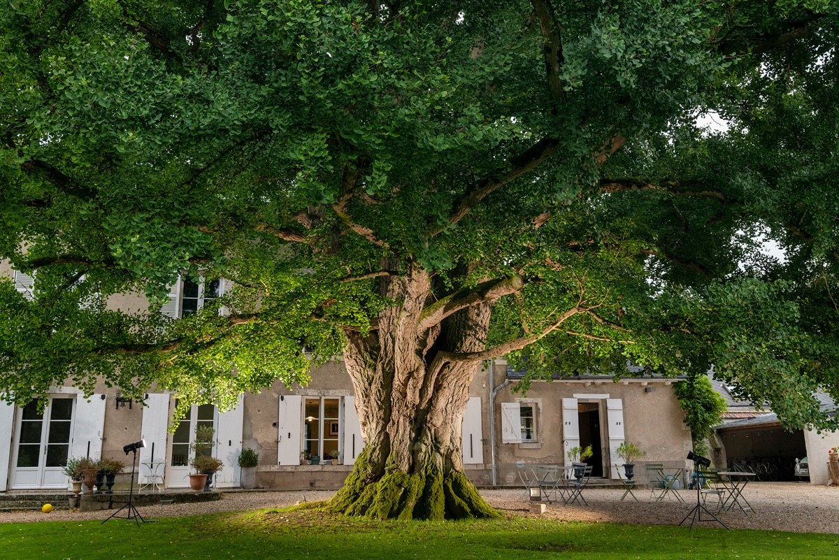 que dans le parc du domaine Saint-Hilaire, à Meung-sur-Loire, ce ginkgo a fière allure : avec un tronc puissant de 5,1 mètres de circonférence, ce trésor ornemental originaire de Chine vous ensorcelle de tous ses charmes. C’est sans aucun doute l’un des plus beaux spécimens de la région Centre-Val de Loire, et même au-delà. Vraisemblablement planté à la construction de la maison, il doit être âgé d’environ 170 ans. Rappelons que le ginkgo est l’unique survivant d’une famille d’arbres apparue à l’ère primaire et qui a connu son apogée au jurassique. Il s’agirait de la plus ancienne espèce d’arbre connue, qui n’a pratiquement pas évolué depuis des millions d’années. Sa culture est séculaire en Chine, dans les monastères, d’où il a été importé vers le Japon et la Corée, autour du XIIe siècle, avant d’être introduit bien plus tard en Europe, au XVIIIe siècle. -