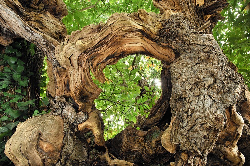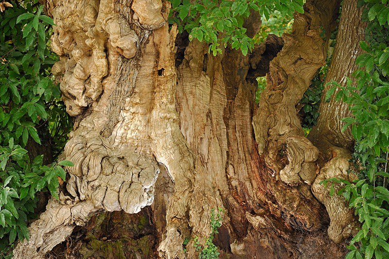aux châtaigniers dans la région. Il est vieux, tout ridé, tout bosselé. Difficile d’évaluer son âge. Son tronc est mort depuis longtemps mais l’arbre – immortel ? – a produit des rejets, bien