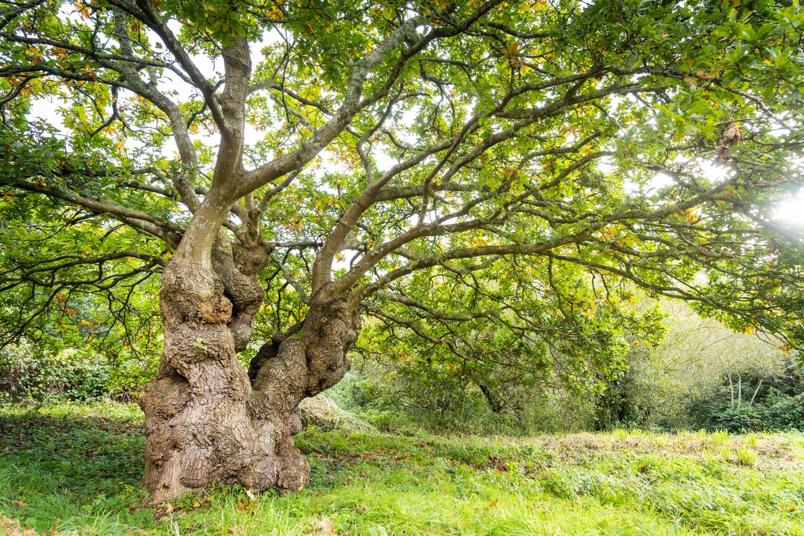 et tombe alors, au fond d’une parcelle, sur un beau chêne. Il n’est pas très haut, mais il est très