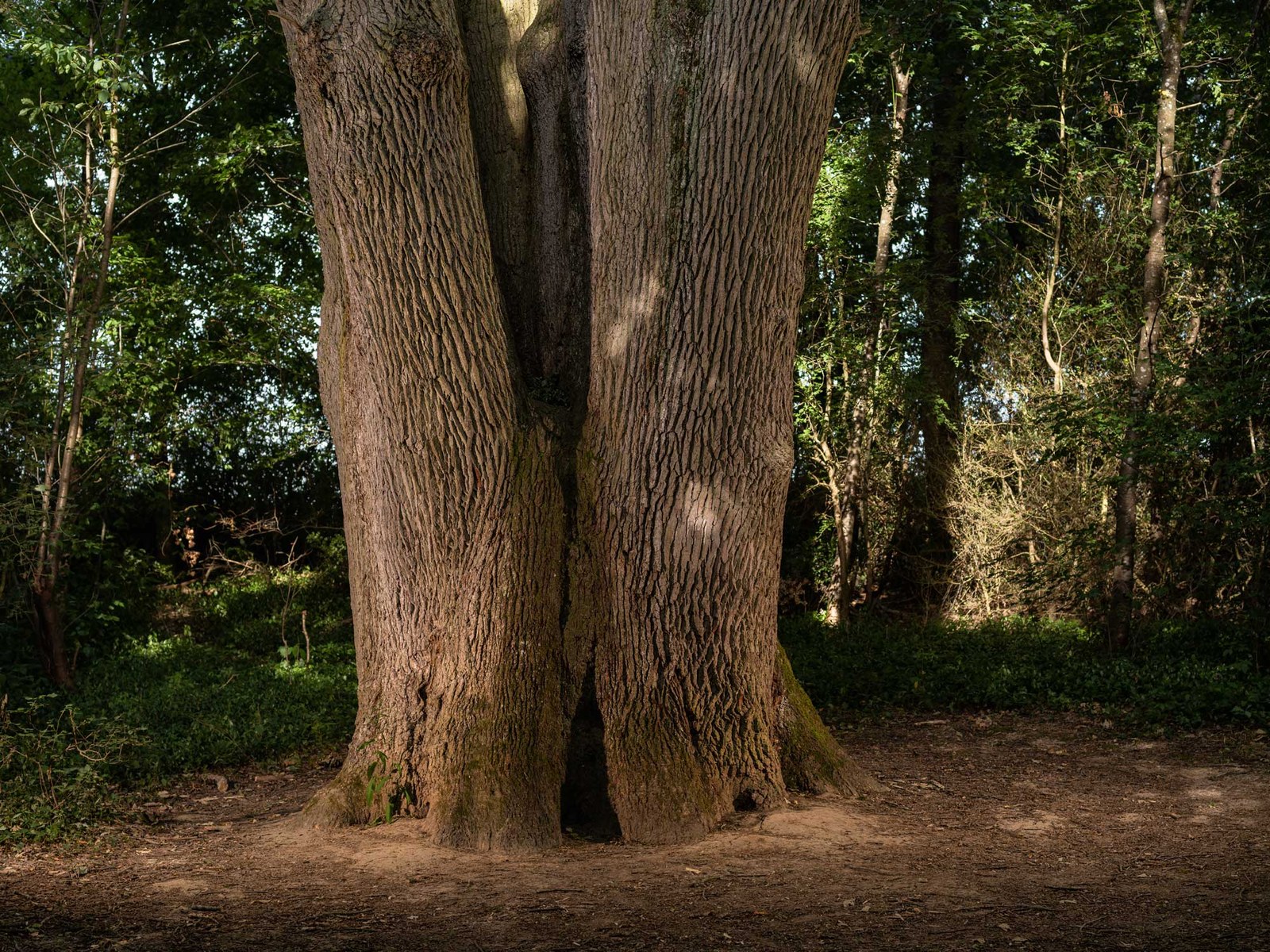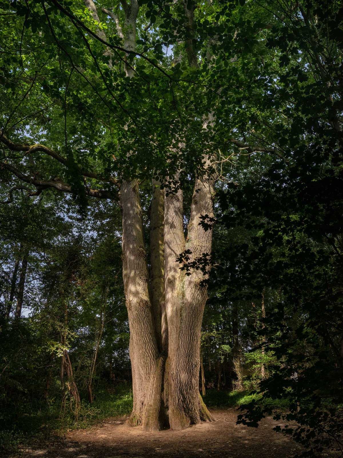 La particularité de cet arbre saute aux yeux quand on tombe littéralement sur lui, à la croisée de plusieurs petits chemins forestiers : outre son port élancé d’arbre de forêt qui est allé chercher haut la lumière, c’est la présence de six troncs qui surprend. Il se dit pourtant que ce chêne rouvre est né d’un unique gland. Selon la légende, ce serait même François Ier qui l’aurait laissé échapper de sa main lors d’une promenade. Si nos calculs sont bons, cela signifie que ce bel arbre peut afficher au bas mot 500 ans… C’est très largement probable. Car l’histoire locale nous apprend que Jacques de Lescornay, avocat du roi, y fait allusion dans ses Mémoires de la ville de Dourdan, en 1624. Elle nous apprend aussi que la petite cuvette qui s’est formée à la base des six troncs se remplit d’une eau réputée bénite, qui a attiré pendant des années des milliers de pèlerins en procession. Aujourd’hui, avec les périodes caniculaires que nous connaissons régulièrement, il n’y a pas d’eau. Mais l’arbre conserve une indéniable prestance.