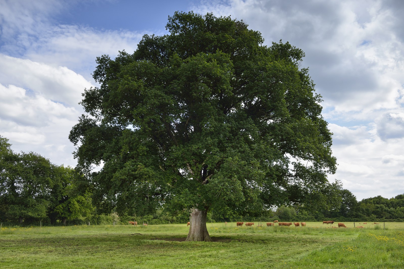 et la beauté du chêne de bocage. Le profil rassurant de l’arbre de la campagne,