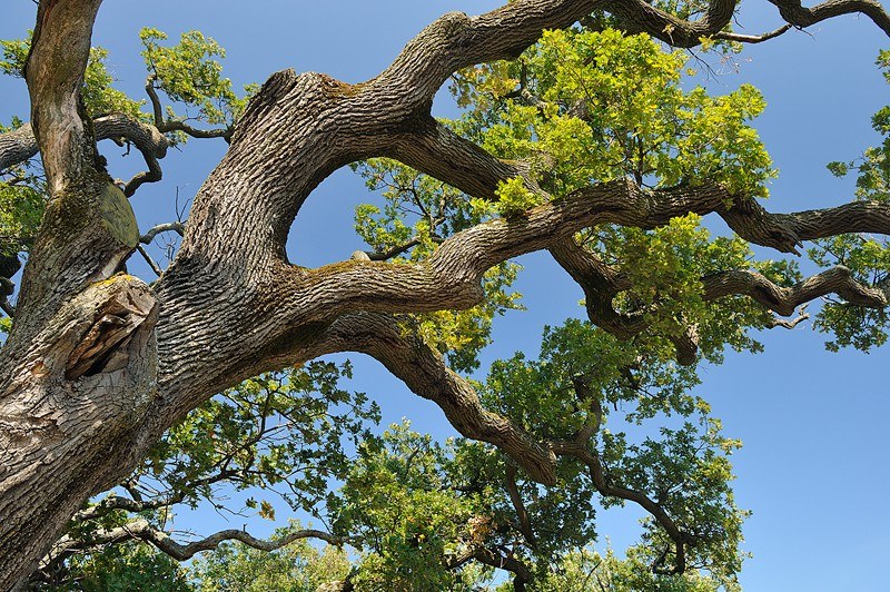 Cet arbre est assez tortueux pour un chêne et ses branches sont bien équilibrées,