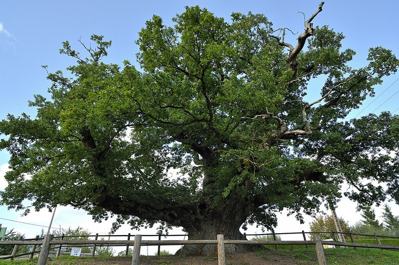 l’appellent aussi « chêne de la Vierge » car, à une époque, une branche, en se cassant, fit apparaître une cavité en forme de grotte. Décidément, un bel emblème !