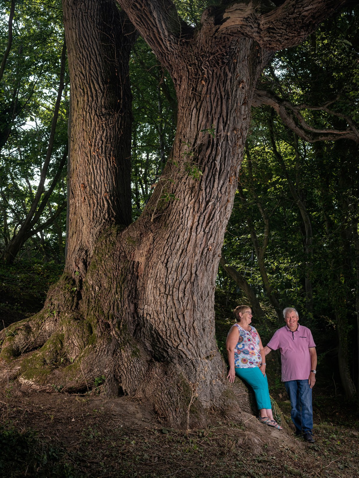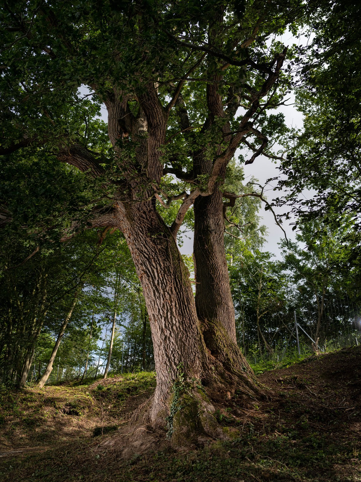 Dans les années 1970, le tracé prévu de l’autoroute A 26 suscite l’émoi des habitants du petit village de Zutkerque : il passe exactement sur le gros chêne situé à l’extrémité du bois de la Drueze et cet arbre est depuis toujours le lieu de rassemblement de tous les enfants du village. La mobilisation s’organise et aboutit à une légère déviation du tracé : le chêne est rendu à sa commune dans les délaissés de l’autoroute. L’arbre est préservé, mais désormais séparé de son village par un ruban de bruit et de fureur qui le frôle à quelques dizaines de mètres . Les enfants ne viendront plus. Éliane Clément et Jean-Marie Fabre, qui m’accompagnent et représentent la municipalité, espèrent bien lui redonner un peu d’attention. En créant des événements ou en traçant des sentiers de randonnée non loin de lui, ils veulent lui rendre la place et la notoriété qu’il mérite. Le goudron contre l’arbre, c’est une sorte de fable moderne tragique. Le plus fort à la longue sera-t-il forcément celui que l’on croit ?