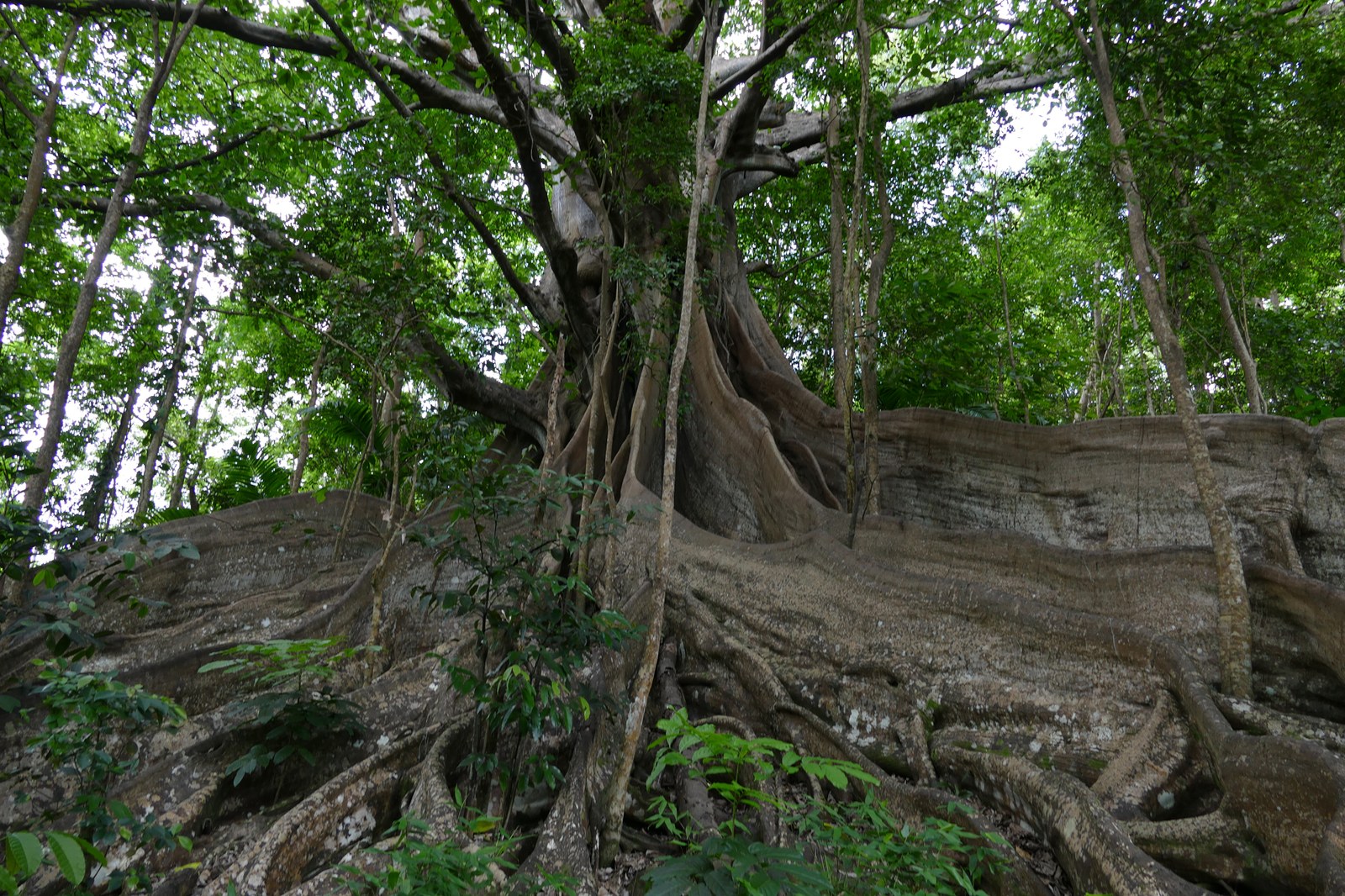 grande feuille de Pointe-Noire figure parmi les figuiers étrangleurs. Il est perdu en forêt et difficile