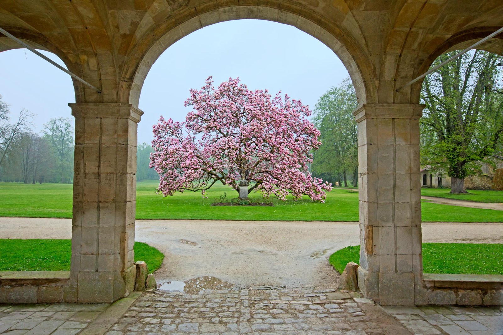 Le magnolia est lié à l’histoire de l’abbaye et du château des Trois Fontaines. L’abbaye des