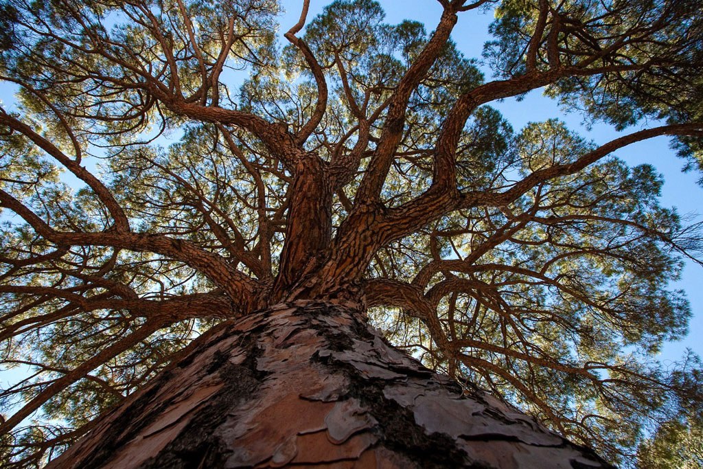 On peut admirer l’architecture de l’écorce pour son caractère ornemental. Virant du brun au rougeâtre, elle a de profondes craquelures formant de grandes plaques. Sa cîme restant compacte toute l’année, ce pin procure