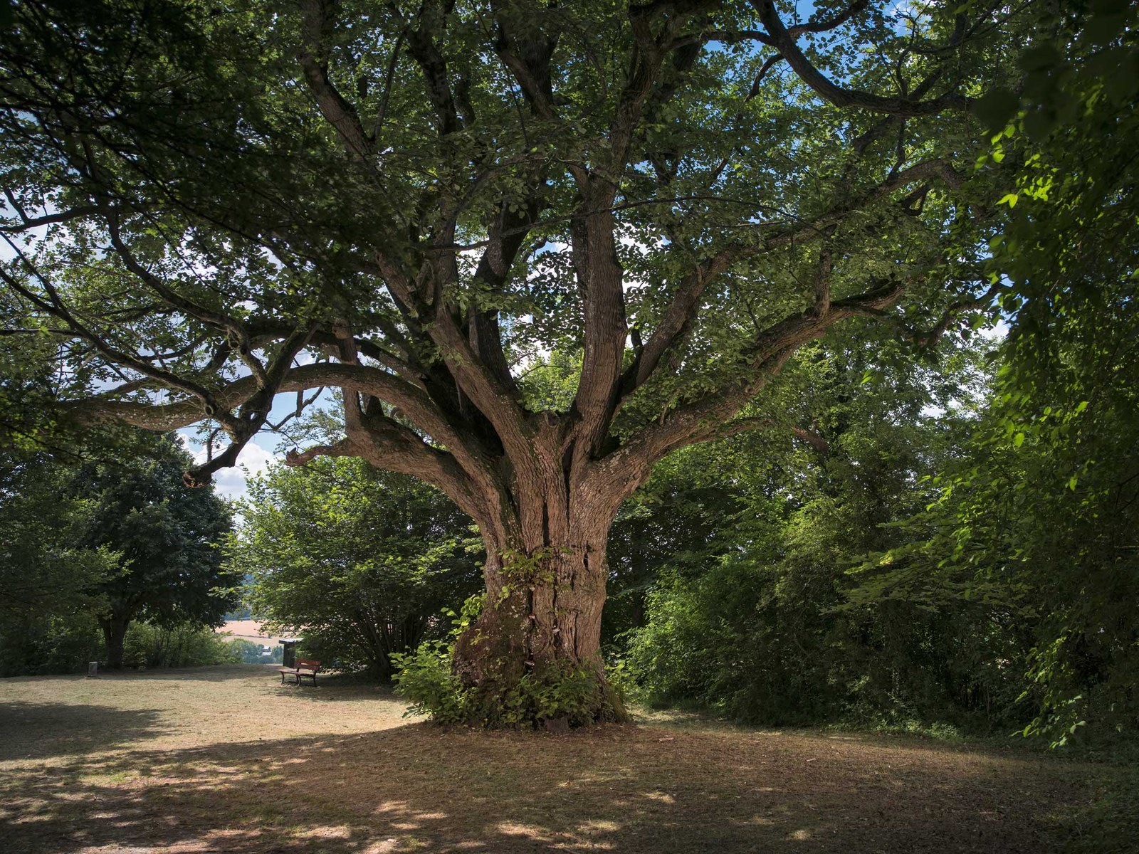 La scène estivale est charmante. Sous un ciel bleu profond, un platane déploie une grande ramure verte en bordure d’un étang calme. Le soleil est de plomb et l’on se glisserait bien sous la voûte végétale, histoire d’accéder à un peu de fraîcheur. C’est chose faite. On découvre alors deux troncs, dont le plus gros dépasse les six mètres de circonférence, qui déploient un immense toit de feuilles et de branches de plus de 1 000 mètres carrés ! En faire le tour demande de marcher sur plus de 100 mètres : c’est assurément un bien beau monument végétal. L’arbre aurait été planté au début du XVIIe siècle, arrivé directement d’Orient au jardin d’acclimatation de Nantes. Don en aurait été fait ensuite au baron de La Bretesche, propriétaire du château éponyme, situé à quelques encablures. Le parc (aujourd’hui communal) dans lequel pousse le platane appartenait jadis au domaine du château. Les racines dans l’eau, le platane prend ses aises, déploie d’immenses branches, dont plusieurs marcottent, dans un enchevêtrement harmonieux d’écorce en écailles, de fruits en boules et de feuilles à lobes aigus.