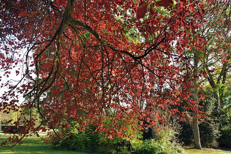 La couleur pourpre n’est-elle pas liée au monde de la spiritualité et de la religion ? Un banc invite d’ailleurs les promeneurs de ce beau parc de Champagne à la méditation.