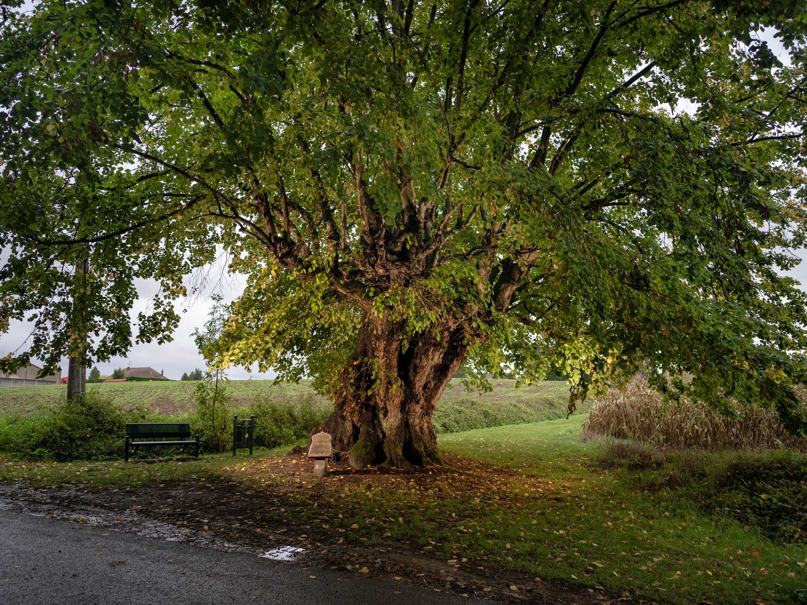 découvrent ce gros tilleul. Intriguées par une petite plaque de pierre sur laquelle