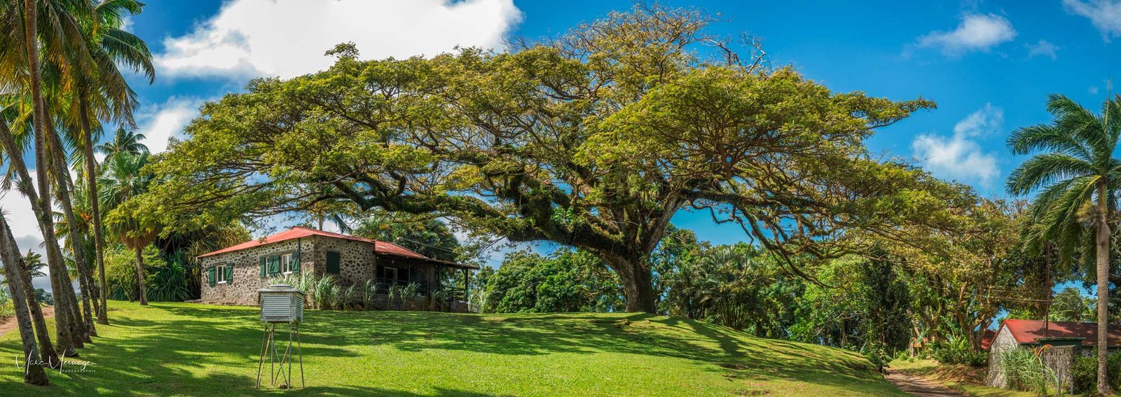 Même pas un siècle ! C’est le temps qu’il a fallu au zamana de l’habitation Bellevue, en Martinique, pour arborer des dimensions impressionnantes : une circonférence de cinq mètres, huit branches principales longues de 20 à 30 mètres, et un recouvrement de près de 2 000 mètres carrés ! à tel point que, quand l’heure d’un petit lifting fut venue, il a fallu quatre à cinq jours de travail pour en venir à bout. Tout en venant grossir la folle litanie des chiffres : 20 à 25 mètres cubes de branches mortes ou fragiles ont été retirés de l’arbre… Cet arbre est un véritable écosystème à lui seul, il héberge une formidable biodiversité. En ce qui concerne les insectes, on y observe de nombreuses colonies de fourmis, appartenant à plusieurs espèces, des blattes, des scolopendres géantes, des mygales arboricoles ou encore des termites... Pour les autres animaux, on peut y observer le manikou (qui est le nom local de l’opossum commun), des lézards, des chauves-souris, divers oiseaux qui y font leurs nids, des perroquets, des perruches… et puis une multitude d’épiphytes, des orchidées, des fougères, des broméliacées…
