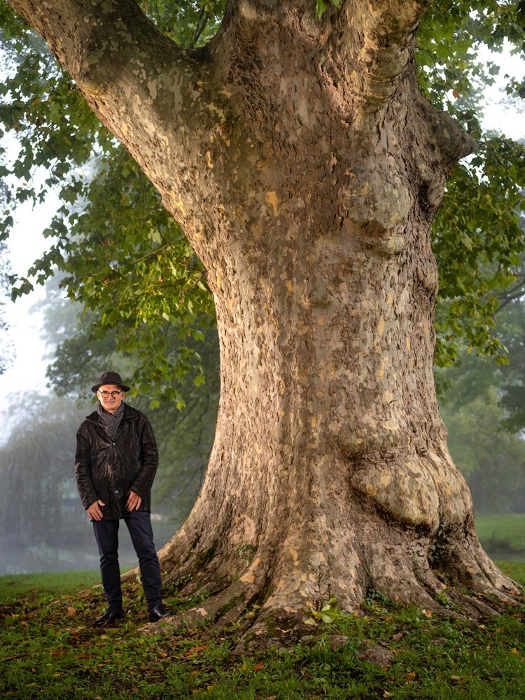 La scène peut être qualifiée de romantique : un platane vénérable se déploie tout en majesté dans la brume diaphane du petit matin, près d’un bief aux eaux calmes sur lesquelles glissent des cygnes, à peine perturbé par les flèches multicolores des martins-pêcheurs. Nous sommes à Guérigny, petite bourgade du plateau nivernais, à deux pas de la grande et belle forêt domaniale des Bertranges, la deuxième forêt productrice de chênes en France après celle de Tronçais. Le sous-sol riche en minerai de fer, l’abondance du bois et la ressource en eau ont longtemps fait de la région l’épicentre de la production de métaux en France, bien avant l’émergence des bassins sidérurgiques du Nord-Est. Les forges royales de Guérigny ont ainsi été le principal fournisseur de la Marine royale française en pièces de fonte, ancres, colliers de mâts… C’est Pierre Babaud de la Chaussade (1706-1792), maître de forges, qui a conçu les forges royales et reconstruit l’ensemble de la ville de Guérigny. Le platane a été planté au XVIIIe siècle, vers 1740. Élément structurant du parc du château de la Chaussade, qui s’étend sur six hectares, savamment implanté au débouché d’un double alignement de tilleuls d’une longueur remarquable de plus d’un kilomètre. Quand la municipalité a ouvert le parc en 2005, après des années d’abandon, le platane Babaud était perdu au milieu d’un fouillis végétal. Ce témoin de toute l’histoire de l’arsenal de la marine royale, impériale puis nationale, que l’on a depuis baptisé platane Babaud par décision municipale, en guise d’hommage, a indéniablement retrouvé toute sa superbe.