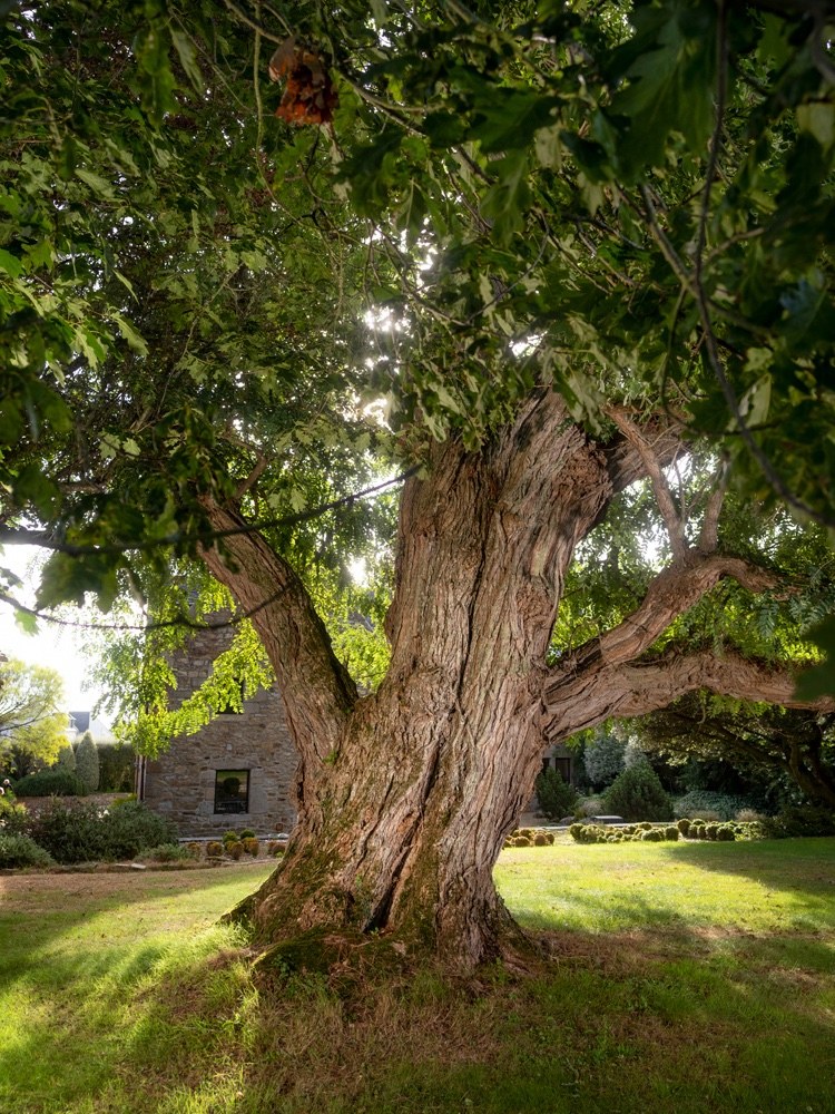 La découverte de ce robinier monumental dans un parc privé de Saint-Pol-de-Léon, dans le Finistère, à quelques encablures de la mer, résulte d’une rencontre entre David Happe, expert arboricole, et les propriétaires, M. et Mme de Sagazan. Ces derniers s’inquiétaient de l’état de l’arbre, dont ils ignoraient le caractère remarquable. Ils font appel à l’expert qui se rend sur place pour examiner le supposé malade et c’est un véritable choc : non seulement l’état de santé est très bon, mais de plus il s’agit d’un spécimen comme il n’en a jamais vu ! David Happe entreprend alors des recherches qui mènent à une conclusion claire et nette : avec un tour de taille de 5 mètres, le robinier du manoir de Gourveau est le plus gros robinier de Bretagne et il s’agit même de l’un des trois plus gros spécimens de France, le premier se situant dans la Vienne, avec 5,8 mètres de circonférence. Et il figure parmi les vingt sujets les plus imposants d’Europe. Sacrée découverte ! À défaut d’archives sur sa date d’implantation, on se prête à imaginer que l’arbre pourrait être contemporain du manoir construit en 1638, après avoir été peut-être débarqué sur les quais de Roscoff (à moins de 5 kilomètres vers le nord) par un navigateur-botaniste averti ? Sur la proposition de David, M. et Mme de Sagazan acceptent de l’inscrire au concours de L’Arbre de l’année 2022. Vous connaissez la suite.