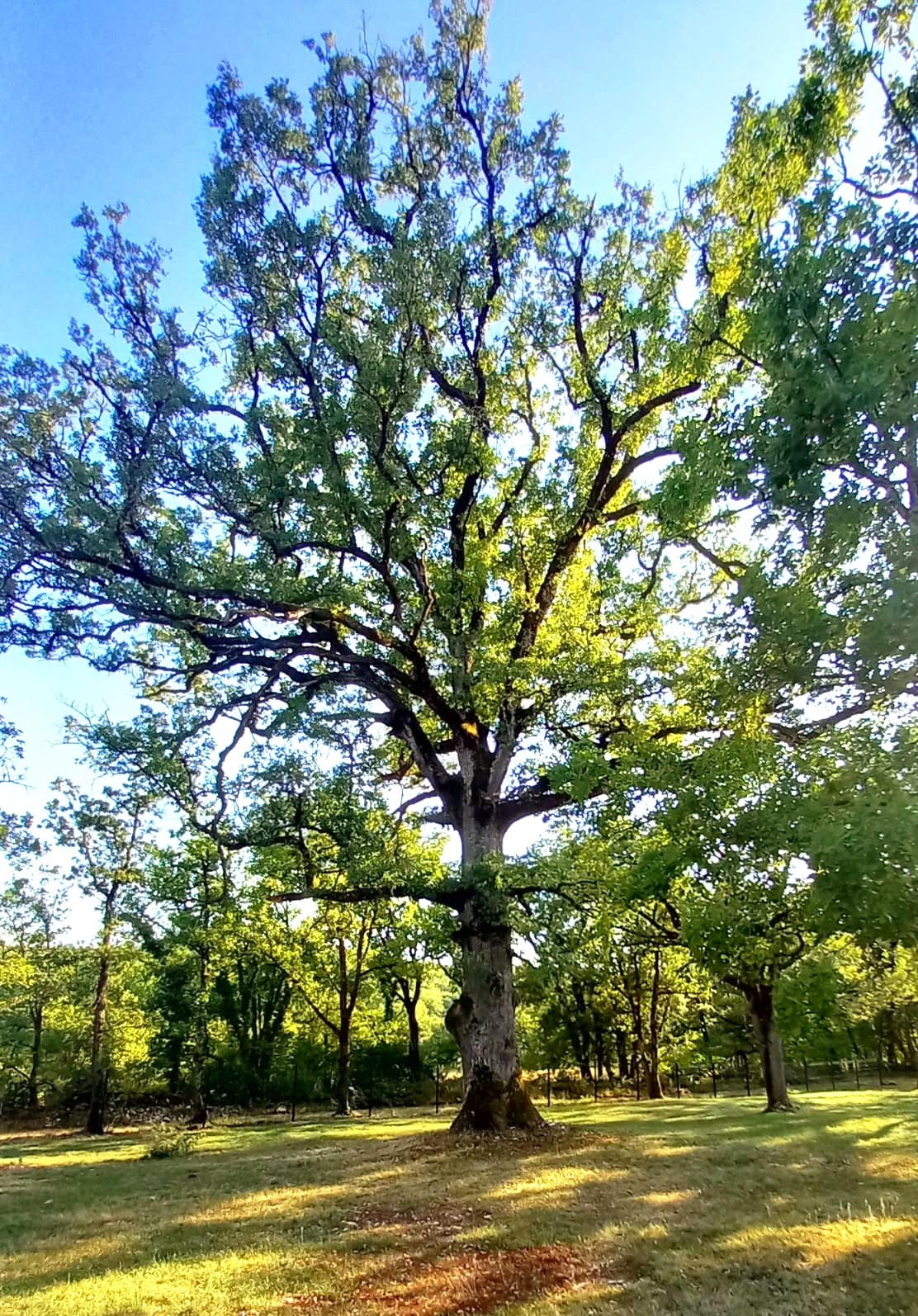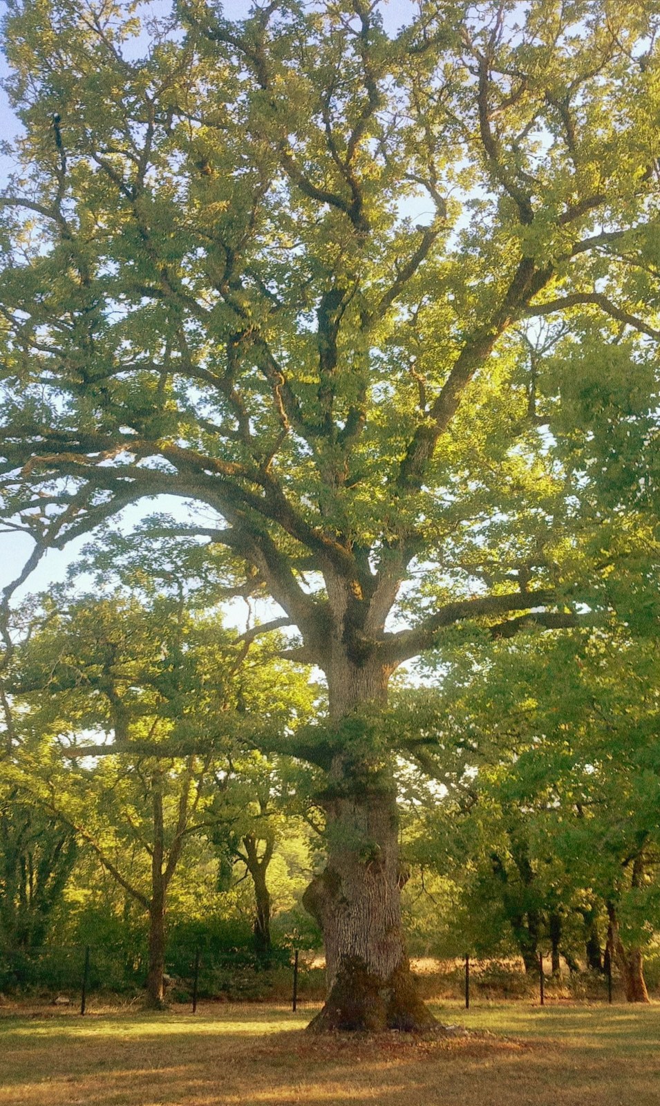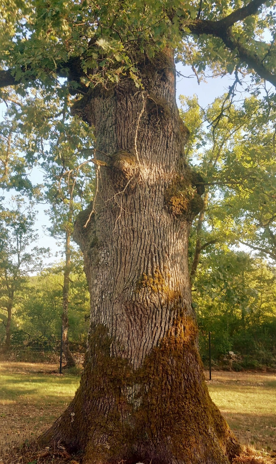Il ne figure sur aucune carte. Mais ceux qui croisent sa présence ne l’oublient jamais. Dans un jardin secret du hameau de Pécheret, à Béduer, se dresse un chêne majestueux, impressionnant comme une cathédrale silencieuse, calme comme un vieux sage, profond comme la terre du Quercy. Je n’étais qu’un passant, un inconnu, quand je suis venu visiter cette demeure. Ce n’était qu’une étape, une recherche parmi tant d’autres. Mais quelque chose s’est produit. Je l’ai vu, lui. Et c’est comme si le monde s’était tu. Son tronc large et imposant, ses branches puissantes, sa silhouette majestueuse et paisible, son silence mystique... Tout en lui disait : « Ne cherche pas plus loin, tu es arrivé. C’est ici, c’est chez toi. » Je n’ai pas choisi ce lieu. Le chêne m’a choisi. Depuis ce jour, je vis sous sa protection. Il ne parle pas, mais ses feuilles murmurent quand je passe. Elles frémissent légèrement, comme un souffle de bienvenue, comme s’il me reconnaissait encore. Peut-être qu’il était déjà là quand les derniers tailleurs de pierre quittaient le château de Béduer, autrefois fief médiéval et forteresse de mémoire. D’autres affirment qu’il aurait vu passer les pèlerins de Saint-Jacques-de-Compostelle, longeant les chemins calcaires à l’orée des bois de Quercy et offert de l'ombre aux paysans de jadis. Ce chêne n’est pas un arbre, c’est un témoin du temps : des guerres, des deuils, des rires, des saisons, des naissances, des absences. Il est une mémoire vivante, enracinée dans le calcaire du Causse, comme un pilier planté dans l’histoire. Son écorce est une carte ancienne que je ne sais pas lire, mais je sens que chaque fissure, chaque nœud, contient des secrets. Peut-être même des mains d’enfants disparus qui l’ont un jour enlacé. Quand je m’appuie contre son tronc, je sens son battement lent, comme un cœur ancien. Ses rides d’écorce racontent des histoires que les hommes ont oubliées, mais que lui conserve en silence. Autour de lui, une génération de jeunes chênes pousse. Ce sont ses enfants. Ou peut-être les miens. Car depuis que je suis ici, je vis avec lui, pour lui, et peut-être à travers lui. Il m’apprend ce que les arbres savent : être fort sans arrogance, grand sans domination, présent sans bruit. Il est vivant d’une lumière invisible, de celle qui console sans parler. Ce géant tranquille, enraciné dans le calcaire du Causse,incarne à lui seul l’esprit de Béduer : fort, discret et généreux. Il ne cherche rien. Il est. Et dans ce monde où tout s’agite, il m’enseigne l’essentiel : l’ancrage, le silence, la patience, la paix. Aujourd’hui, je propose ce chêne au Concours de l’Arbre de l’Année. Pas parce qu’il est le plus haut. Pas parce qu’il est le plus vieux. Mais parce qu’il est le plus vrai. Parce qu’il m’a appris que le silence peut aimer. Parce qu’il a fait de moi quelqu’un de plus enraciné, quelqu’un de plus vivant. Ce chêne m’a choisi. Et si j’écris ces lignes aujourd’hui, c’est pour l’honorer. Pour lui rendre ce qu’il m’a donné sans jamais rien demander. Et s’ils te choisissent, toi qui m’a choisi un jour, alors c’est le monde entier qui saura ce que je sais déjà : Que le plus bel arbre de France n’est pas celui qu’on voit le plus… C’est celui qu’on sent, même les yeux fermés.